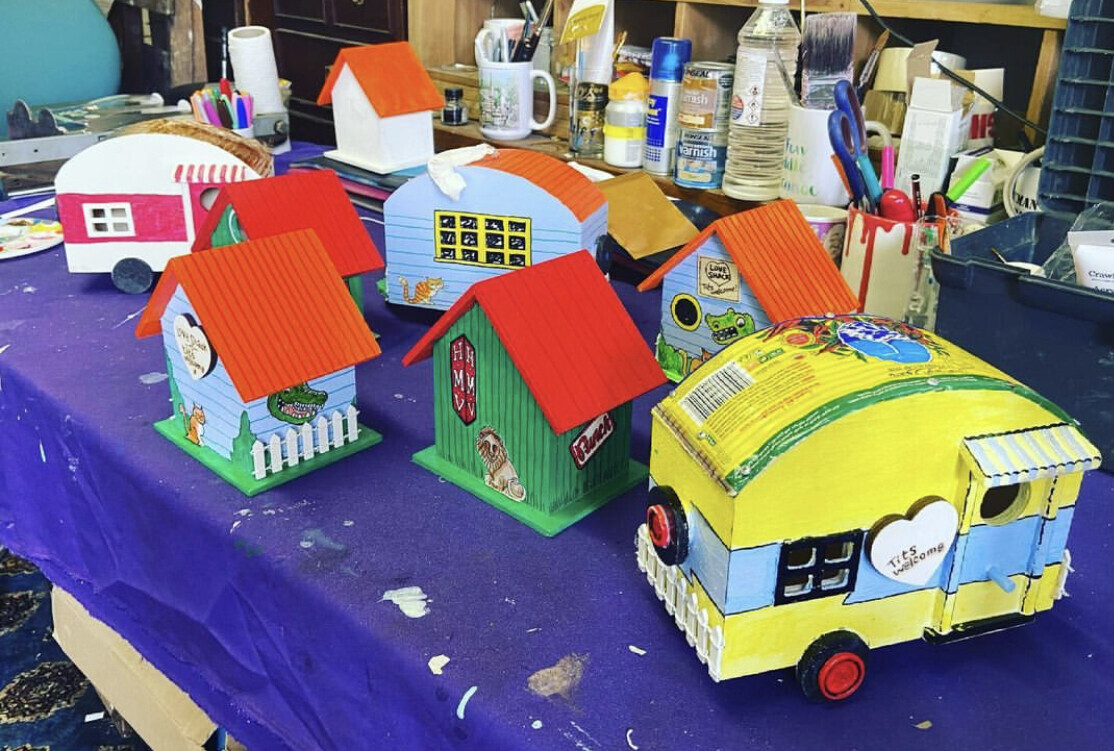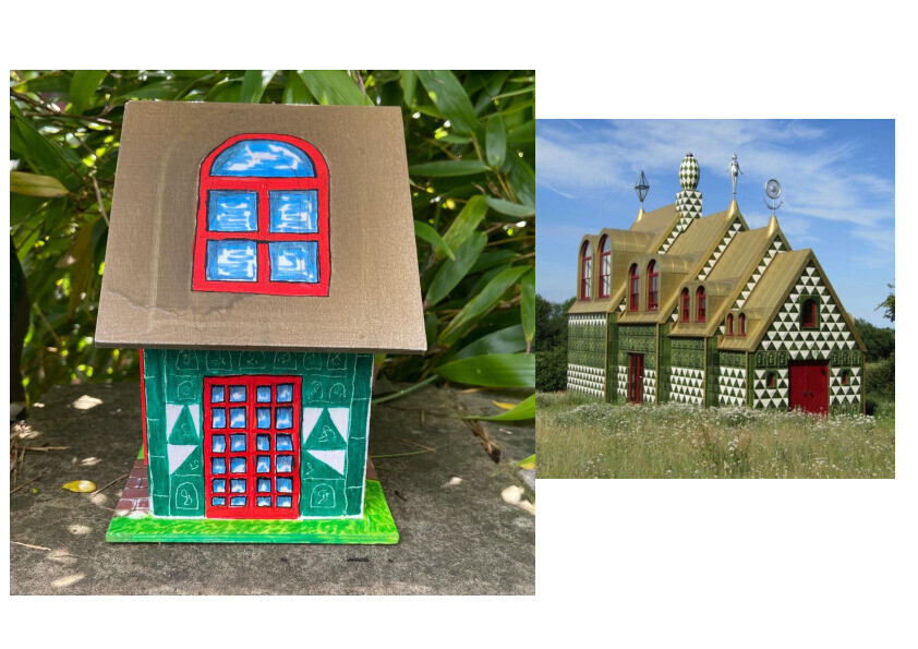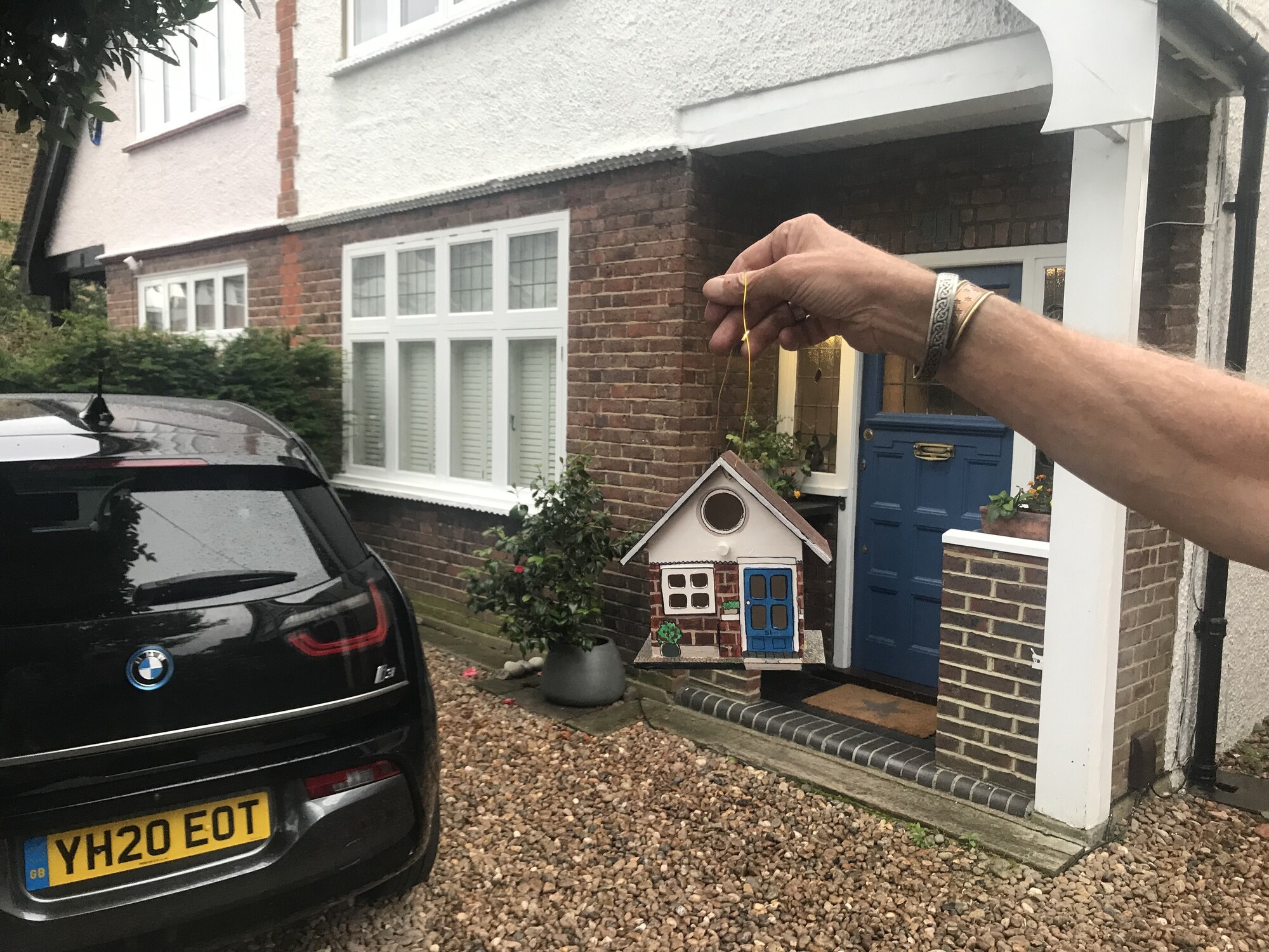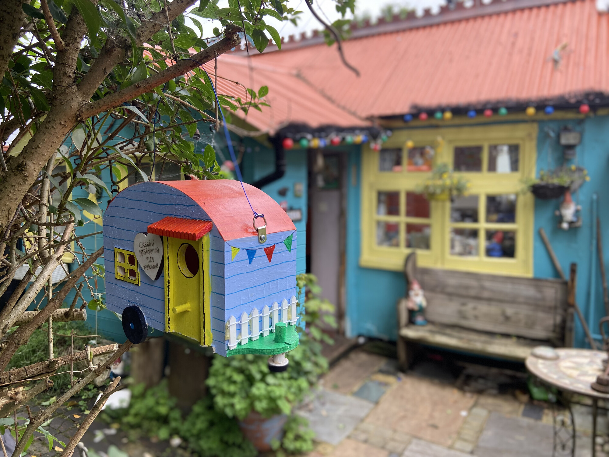 So, you give us photos of your house to give us a flavour, and any extra themes - like cats for instance - and Sheba paints a pastiche on a little bird house or caravan.