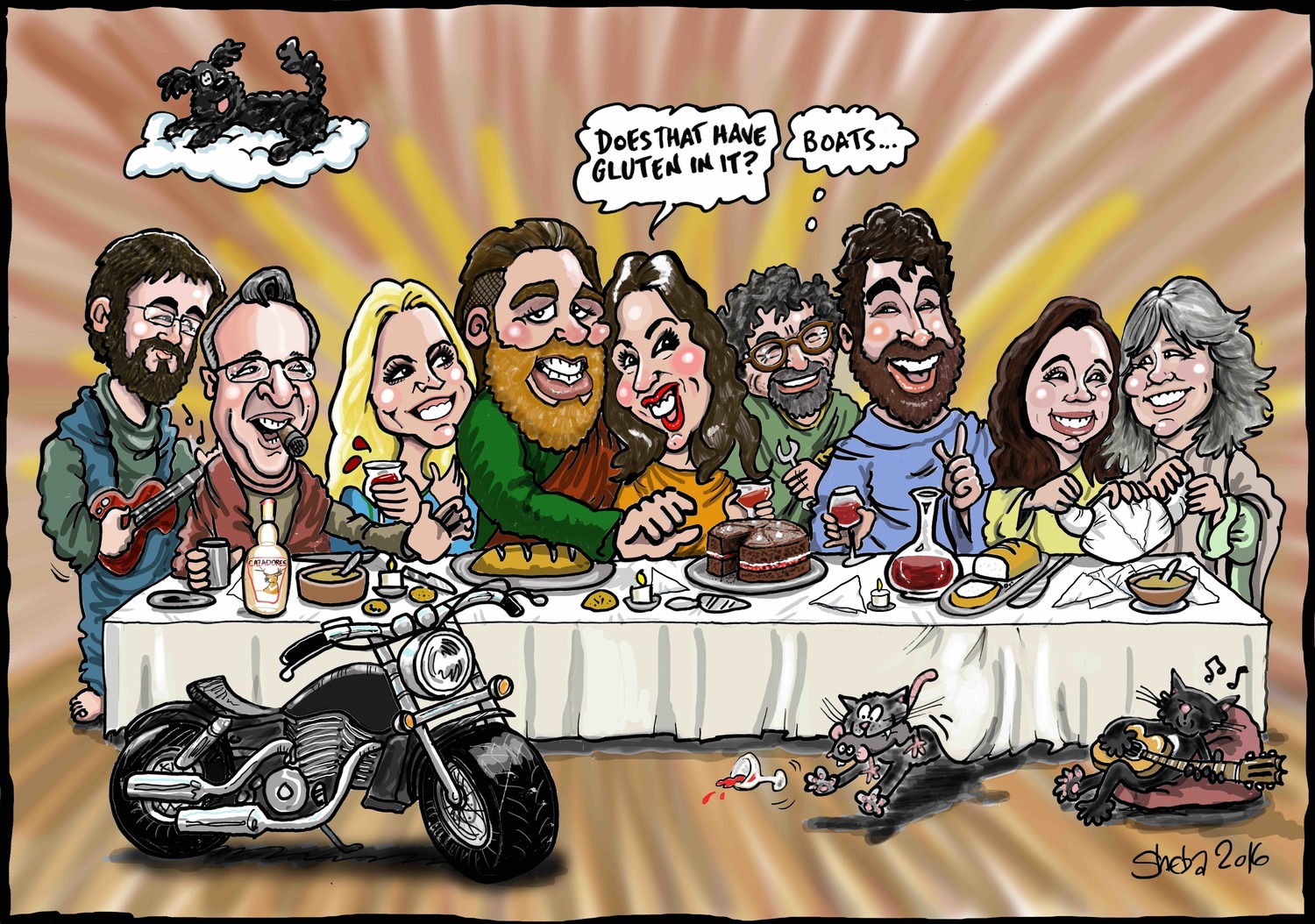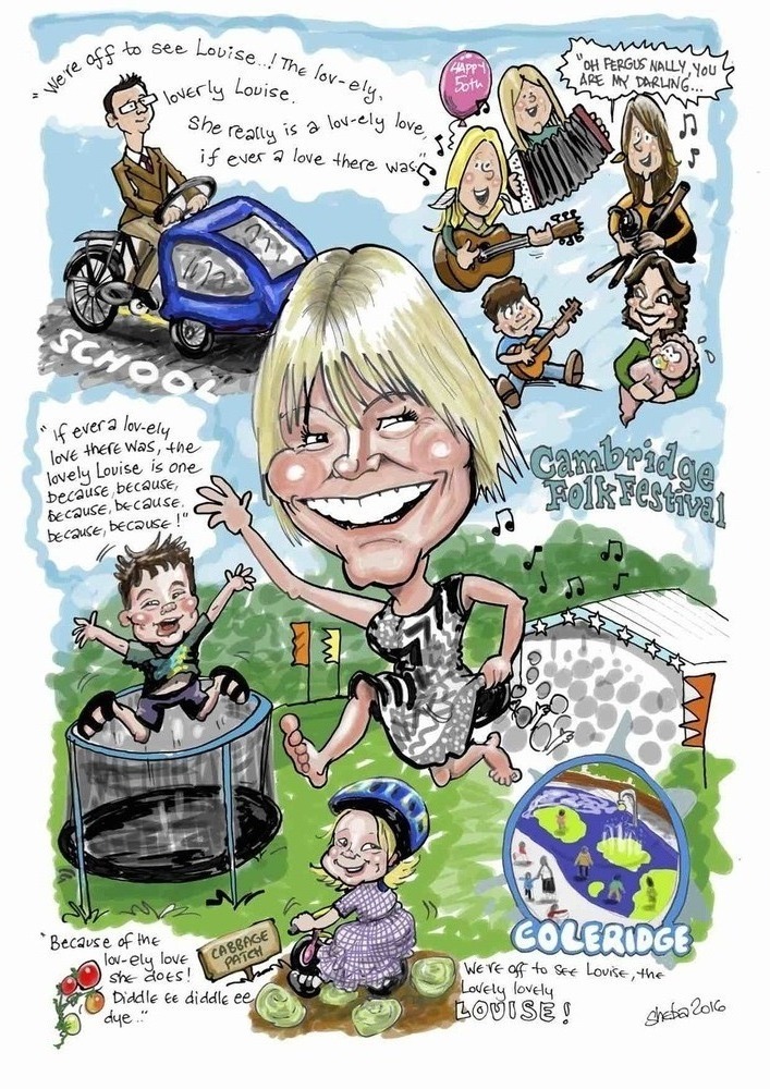 Far and away the most popular stuff we do. Invitations, gifts, birthday presents, Christmas cards, or just an excuse to have a laugh at your loved ones expense. Families, couples, individuals. Not forgetting pets, (Sheba is brilliant at drawing animals!) cars, houses, hobbies, quirks, fetishes and foibles.