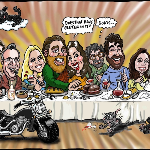 If you want to really make the most of it we can also print the artwork onto mugs, place mats, or pretty much anything else in any quantity. Just get in touch with a rough idea of a brief and who and what is to be included and we'll get back to you with a quote.