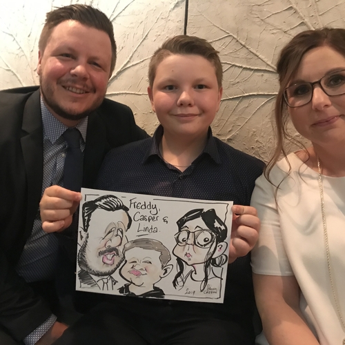 No-one has to pose - we circulate round the crowds at your reception or across the tables during dinner producing a finished caricature in a few minutes! Always a huge hit this has been our staple for years.