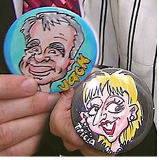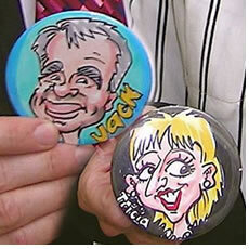 YOUR CARICATURE ON A BADGE, FRIDGE MAGNET, OR POCKET MIRROR... For something totally different at your party check these out -