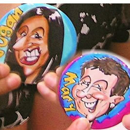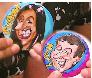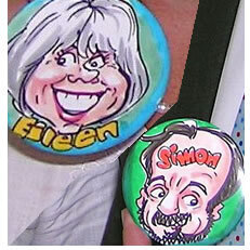 All we need from you is a table and a couple of chairs and we can produce up to 30 badges an hour! No-one else in the UK is doing this - it is totally original and unique to us ...and proving very popular! A new twist on party caricatures